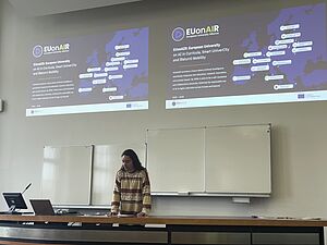 At the start of the summer semester, EUonAIR was introduced to the new students. Student Board representative Carlos Maza, himself an international student at HTW Berlin, welcomed the new incoming and degree-seeking students during the orientation days and provided information about the EUonAIR university alliance.