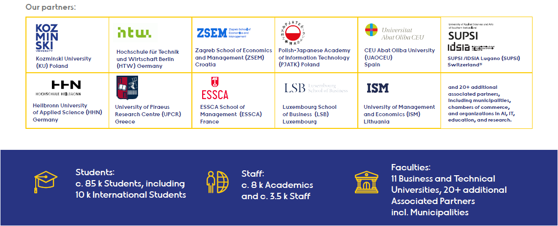The European University on AI in Curricula, Smart UniverCity and (Return) Mobility (EUonAIR) is a university alliance of eleven technical and business-oriented universities, including HTW Berlin. The network is complemented by more than 20 associated partners from business, research, and civil society.