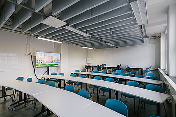 Zwei Modellräume sind als Flexible Learning Environments mit mobiler Einrichtung, Tische und Stühle auf Rollen, ausgestattet. Damit werden veränderbare Raumkonfigurationen und somit vielfältige Interaktionsmöglichkeiten zwischen Studierenden und Lehrenden ermöglicht.