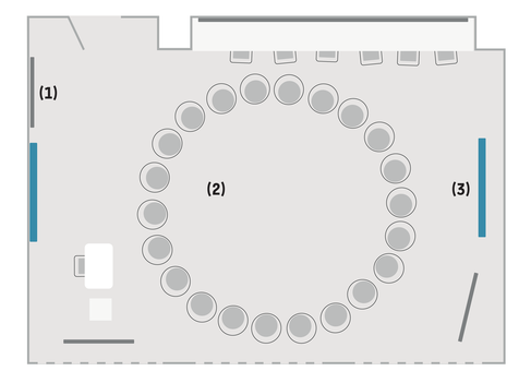 - Hybrides Setting: Durch eine USB-C Verbindung wird das eigene Gerät vom Dozent:innenpult angesteuert und ist mit gängigen Online-Plattformen (wie Zoom, BBB, Teams, etc.) verbunden.